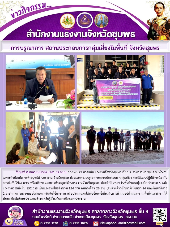 การบรูณาการ สถานประกอบการกลุ่มเสี่ยงในพื้นที่ จังหวัดชุมพร