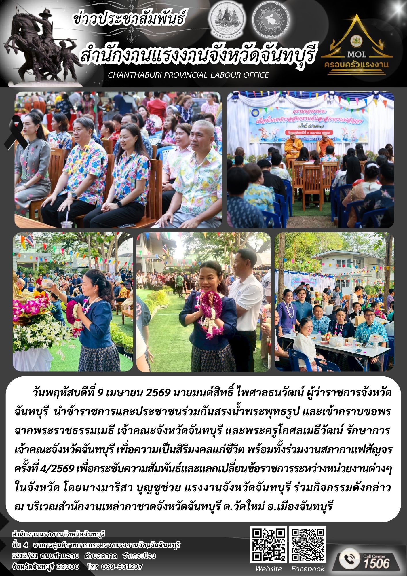 แรงงานจังหวัดจันทบุรี ร่วมสรงน้ำพระพุทธรูป และเข้ากราบขอพรเจ้าคณะจังหวัดจันทบุรี รับปีใหม่ไทย