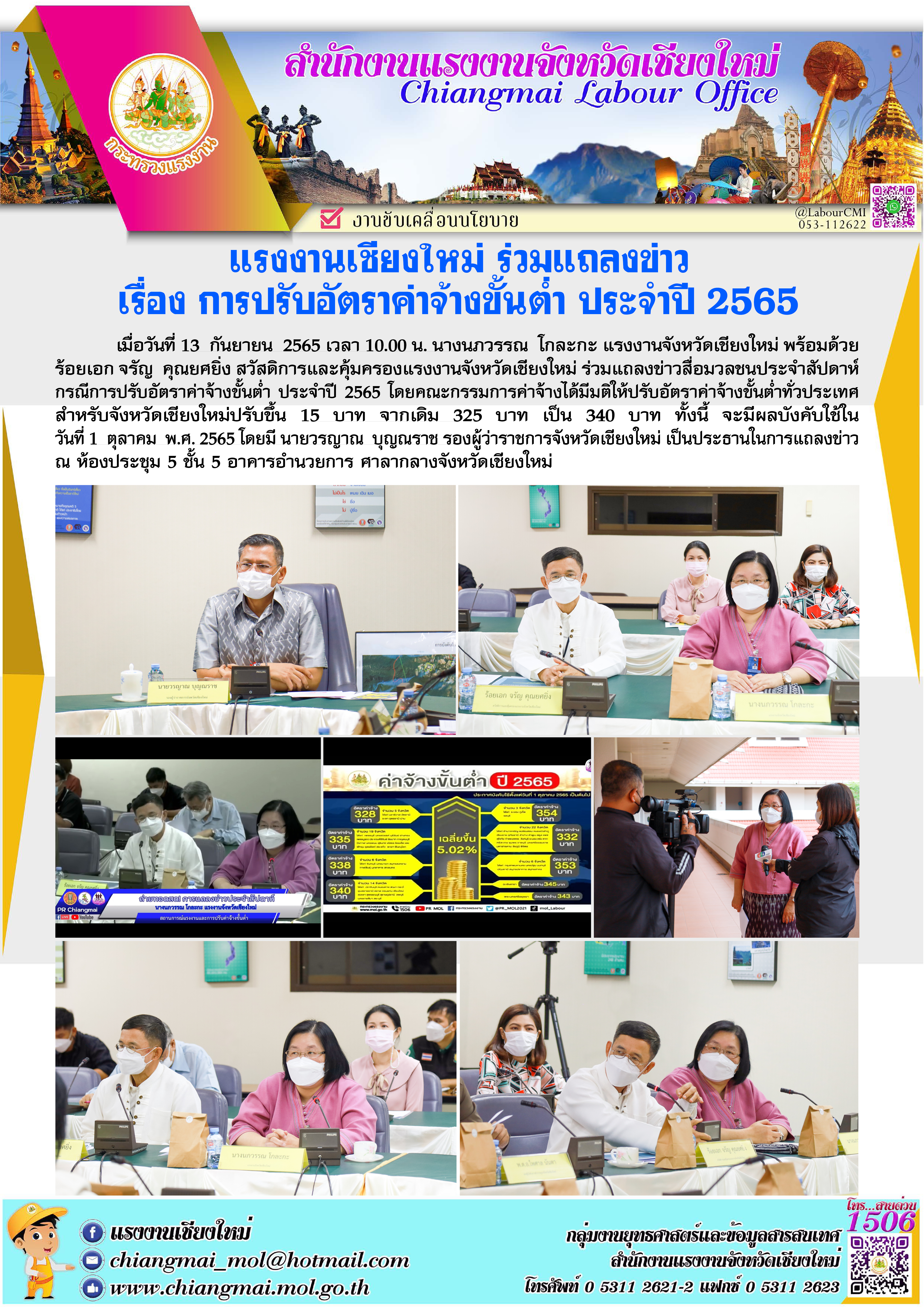 แรงงานเชียงใหม่ ร่วมแถลงข่าวเรื่องการปรับอัตราค่าจ้างขั้นต่ำ ประจำปี 2565