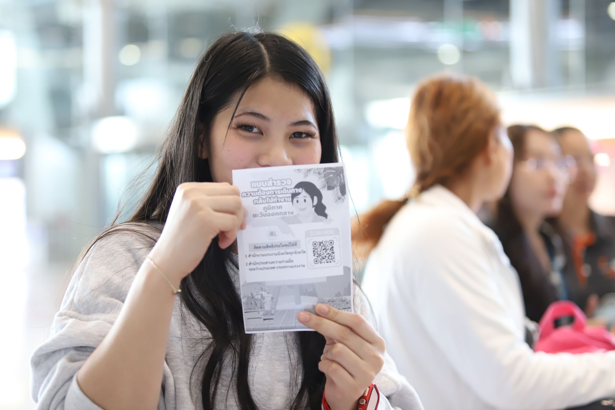 ขั้นตอนที่ 2) เมื่อเดินทางถึงสนามบินในไทย เจ้าหน้าที่กระทรวงแรงงานจะรอรับที่สนามบิน โดยให้แรงงานสแกน QR Code เพื่อกรอกข้อมูลความประสงค์ขอรับความช่วยเหลือ เช่น ต้องการหางานทำในประเทศ ต้องการกลับไปทำงานในต่างประเทศหลังจากสถานการณ์คลี่คลาย หรือต้องการฝึกทักษะอาชีพ ฝึกภาษาต่างประเทศ อื่น ๆ
