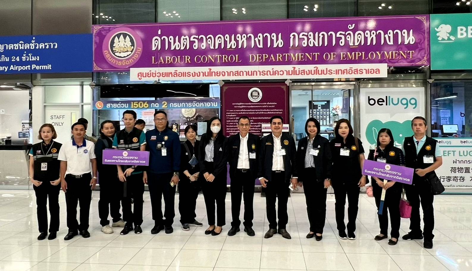 วันที่ 25 ตุลาคม 2566 นายไพโรจน์ โชติกเสถียร ปลัดกระทรวงแรงงาน มอบหมายให้ นายนันทชัย ปัญญาสุรฤทธิ์ ผู้ตรวจราชการกระทรวงแรงงาน ต้อนรับและดูแลอำนวยความสะดวกแรงงานไทยที่ได้รับผลกระทบจากความไม่สงบในอิสราเอลและแจ้งความประสงค์เดินทางกลับถึงประเทศไทย ณ ท่าอากาศยานสุวรรณภูมิ จังหวัดสมุทรปราการ โดยมี ผู้บริหารระดับสูงจากหน่วยงานในสังกัดกระทรวงแรงงาน และหน่วยงานราชการต่างๆ ร่วมอำนวยความสะดวกและแนะนำสิทธิในการช่วยเหลือเยียวยา ณ บริเวณชั้น 2 ประตู 10 อาคารผู้โดยสารขาเข้าระหว่างประเทศ ท่าอากาศยานสุวรรณภูมิ จังหวัดสมุทรปราการ
