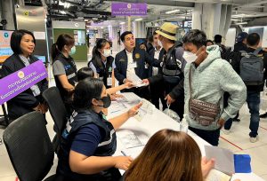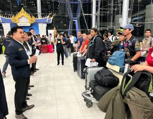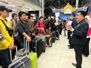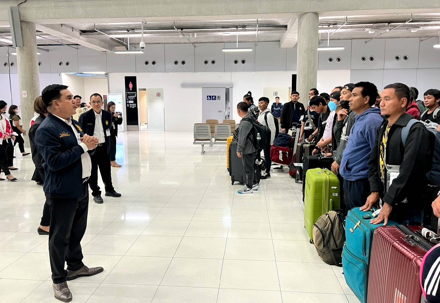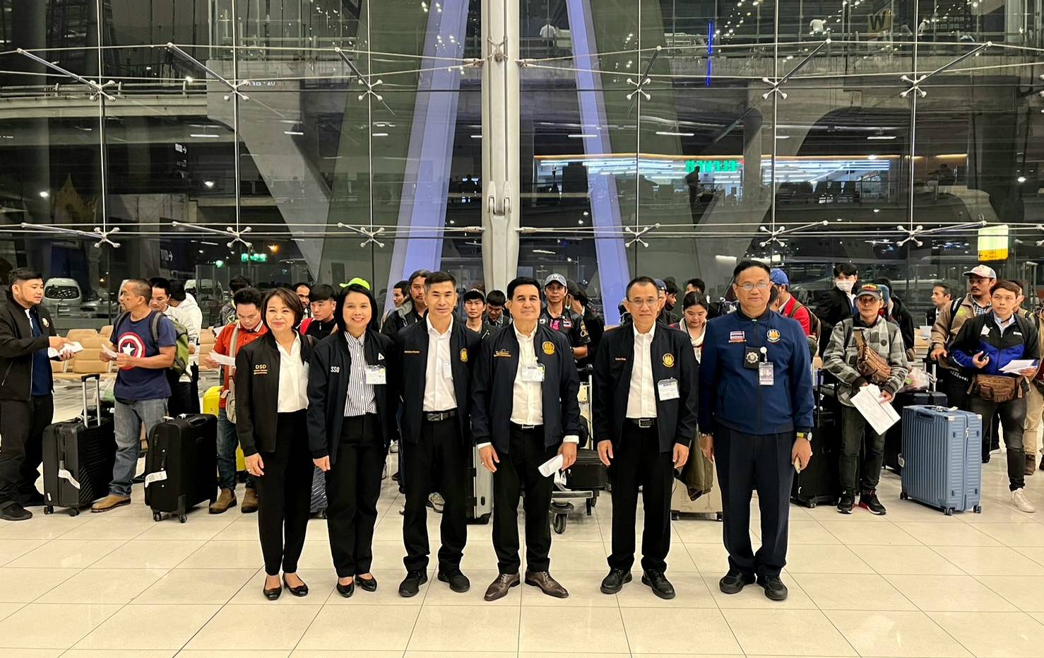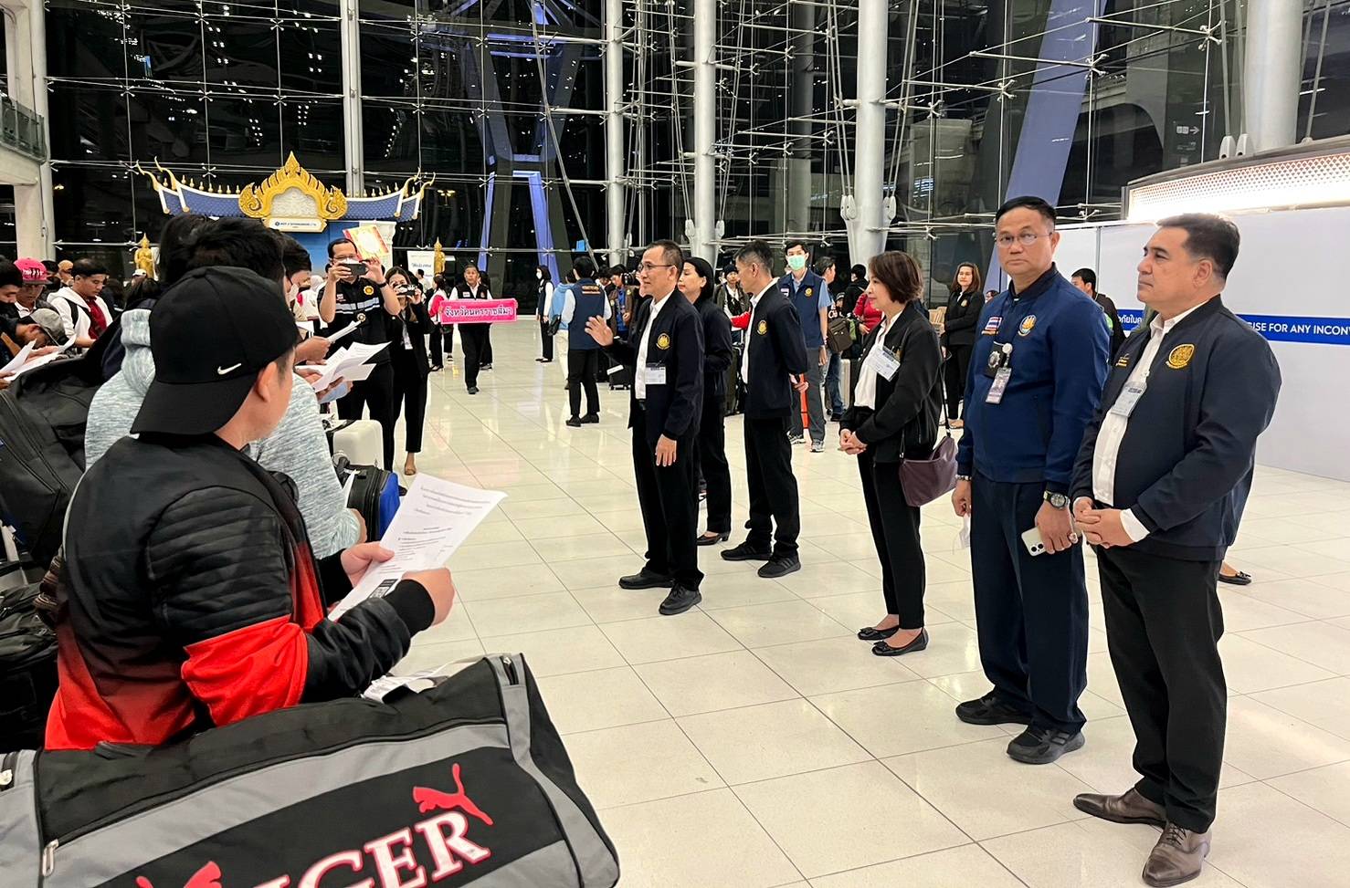 On October 25, 2023, the Permanent Secretary of Labour, Mr. Phairoj Chotikasatian, assigned the Ministry of Labour’s Inspector-General, Mr. Nantachai Panyasurarit, to welcome and support Thai workers affected by the unrest in Israel who had reported their intention to return to Thailand. The occasion took place at Suvarnabhumi Airport, Samut Prakan Province. Executives from the Ministry of Labour’s agencies and various government agencies also joined in supporting and advising the workers’ rights to benefits and remedies at the 2nd floor, Gate 10, International Arrivals Building, Suvarnabhumi Airport, Samut Prakan Province.