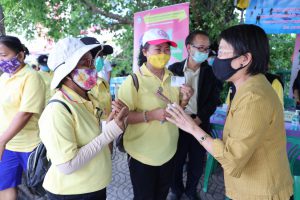 นางเธียรรัตน์ กล่าวว่า จากการลงพื้นที่ในวันนี้ เพื่อมาตรวจเยี่ยมพูดคุยสอบถามความต้องการในการขอรับความช่วยเหลือจากภาครัฐ ในส่วนของกระทรวงแรงงานได้บูรณาการหน่วยงานในสังกัดนำบริการด้านแรงงานและมาตรการต่างๆ มาช่วยเหลือผู้ที่ได้รับผลกระทบจากโควิด -19 เพื่อให้ก้าวข้ามวิกฤตินี้ไปให้ได้ อาทิ การหางานให้ทำ การแนะแนวอาชีพ การรับงานไปทำที่บ้าน การประกอบอาชีพอิสระ การฝึกอาชีพตามความต้องการ การพัฒนาทักษะฝีมือเพื่อการประกอบอาชีพอิสระ การให้ความรู้เรื่องกฎหมายคุ้มครองแรงงาน และการรับสมัครเข้าเป็นผู้ประกันตนมาตรา 40 เพื่อสร้างหลักประกันความมั่นคง เป็นต้น