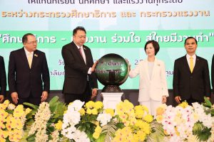 The Minister of Education, Ms. Treenuch Thienthong, said that the Ministry of Education had assigned the Office of the Vocational Education Commission as the main agency in developing the curriculum, staff, and teachers suitable for each context. It strives to promote vocational education in the bi-semester system and extend the results to enterprises. It aims to establish skill standard assessment centers and knowledge and competency assessment centers in educational institutions in all provinces, including support in planning the production of manpower that meets the needs of the labour market in the private sector through the Big Data database system. The efforts encourage students to have jobs, a career, and a good quality of life and become an important force in driving the country’s economic and social development.