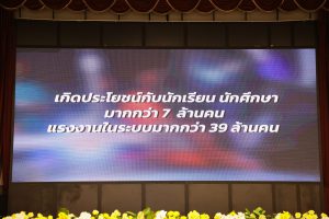 The Department of Skills Development has developed a curriculum to link skill standards according to the national qualifications framework to up-skill students before entering the workforce, in 12 technology groups, with over 2,500 courses. It benefits over 593,329 students. Skill standard assessment centers have been formed in educational institutions nationwide, with over 264 places and over 250,000 students taking tests. There is also an exemption of fees for accreditation as a competency assessment center for labour skill standards in occupations that may be dangerous to the public, in the amount of 12,000 Baht, given to government educational institutions under the Ministry of Education. It aims to promote and develop bilateral management of vocational education and link the skills with the World Skills Competition to enable students to perform well according to international standards.