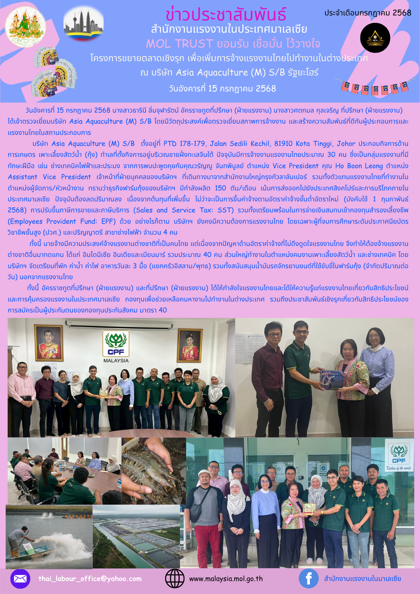 โครงการขยายตลาดเชิงรุกฯ ณ บริษัท Asia Aquaculture(M) S/B รัฐยะโฮร์