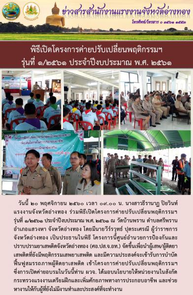 โครงการค่ายปรับเปลี่ยนพฤติกรรมฯ รุ่นที่ 1/2561 ประจำปีงบประมาณ พ.ศ. 2561 ของจังหวัดอ่างทอง