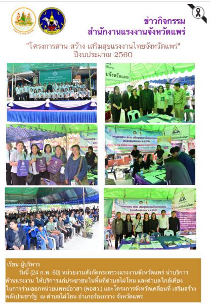 โครงการจังหวัดเคลื่อนที่เสริมสร้างพลังประชารัฐจังหวัดแพร่ ประจำปีงบประมาณ พ.ศ.2560
