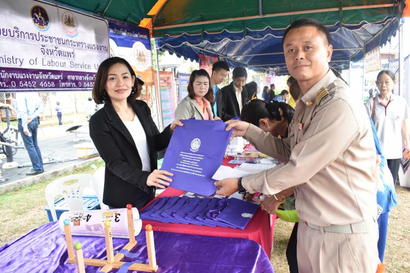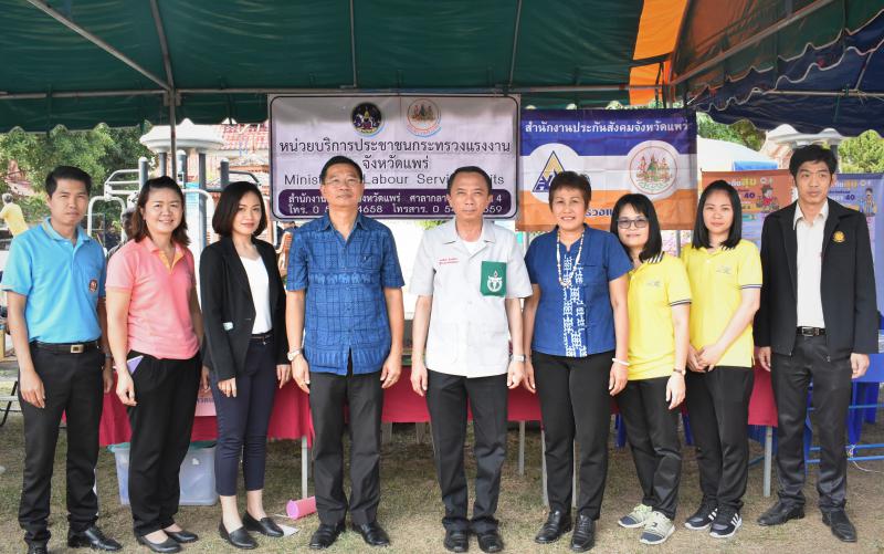 วันนี้ 10 มกราคม 2562 นางสาวปราณี ชลารักษ์ แรงงานจังหวัดแพร่ มอบหมายให้นางสาวภรภัทร อุปถัมป์ เจ้าพนักงานการเงินและบัญชีปฏิบัติงาน ร่วมกับหัวหน้าส่วนราชการสังกัดกระทรวงแรงงานจังหวัดแพร่ เข้าร่วมโครงการจังหวัดเคลื่อนที่เสริมสร้างพลังประชารัฐจังหวัดแพร่ ประจำปีงบประมาณ 2562 ณ โรงเรียนบ้านแม่คำมีวังช้าง หมู่ที่ 3 บ้านวังช้าง ตำบลแม่คำมี อำเภอเมืองแพร่ จังหวัดแพร่ โดยมีผู้ว่าราชการจังหวัดแพร่เป็นประธานในโครงการฯดังกล่าว