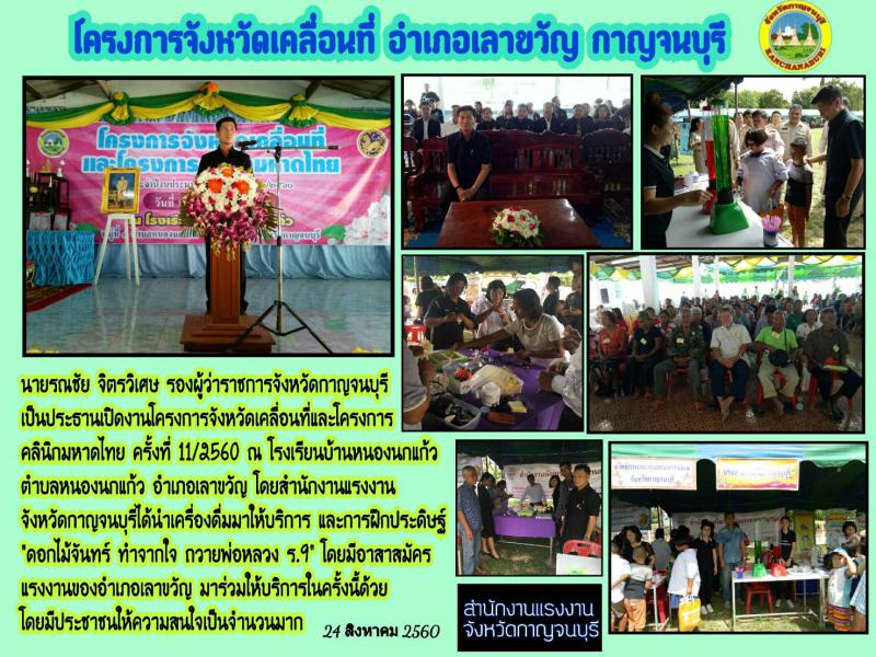 นายรณชัย จิตรวิเศษ รองผู้ว่าราชการจังหวัดกาญจนบุรี เป็นประธานเปิดโครงการจังหวัดเคลื่อนที่และโครงการคลินิกมหาดไทย ครั้งที่ 11/2560 ณ โรงเรียนบ้านหนองนกแก้ว ตำบลหนองนกแก้ว อำเภอเลาขวัญ จังหวัดกาญจนบุรี