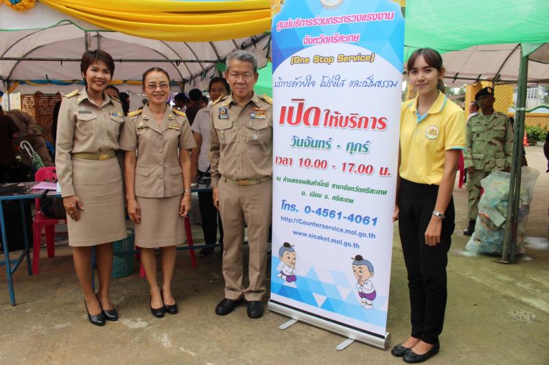 วันจันทร์ที่ 16 กันยายน 2562 เวลา 10.00 น. นายวีระศักดิ์ วิจิตร์แสงศรี ผู้ว่าราชการจังหวัดศรีสะเกษ เป็นประธานเปิดโครงการจังหวัดเคลื่อนที่ ประจำเดือนกันยายน 2562 ณ วัดบ้านจาน หมู่ที่ 1 ตำบลจาน อำเภอกันทรารมย์ จังหวัดศรีสะเกษ ซึ่งหน่วยงานในสังกัดกระทรวงแรงงานจังหวัดศรีสะเกษ นำโดย นางณัฐกฤตา ดาหาร แรงงานจังหวัดศรีสะเกษ พร้อมด้วยหัวหน้าส่วนราชการและผู้แทนส่วนราชการ ในสังกัดกระทรวงแรงงานจังหวัดศรีสะเกษ ได้นำบริการด้านแรงงานและการบริหารจัดการด้านแรงงานเชิงบูรณาการ สู่ประชาชนในพื้นที่/ชุมชน ได้แก่ บริการประชาสัมพันธ์ข้อมูลภารกิจกระทรวงแรงงานทุกกรม รับลงทะเบียนสมัครงานทั้งในและต่างประเทศ รับลงทะเบียน ฝึกอาชีพ/ฝึกพัฒนาทักษะฝีมือแรงงาน ให้คำแนะนำปรึกษาปัญหาด้านแรงงาน ให้คำปรึกษาเกี่ยวกับผู้ประกันตน รับสมัครผู้ประกันตน มาตรา 40 และรับเรื่องราวร้องทุกข์ด้านแรงงาน นอกจากนี้ สำนักงานพัฒนาฝีมือแรงงานศรีสะเกษ ยังได้ชงกาแฟลำดวนฟรีบริการให้แก่ประชาชนในพื้นที่อีกด้วย มีผู้มาใช้บริการทั้งหมด จำนวน 250 ราย