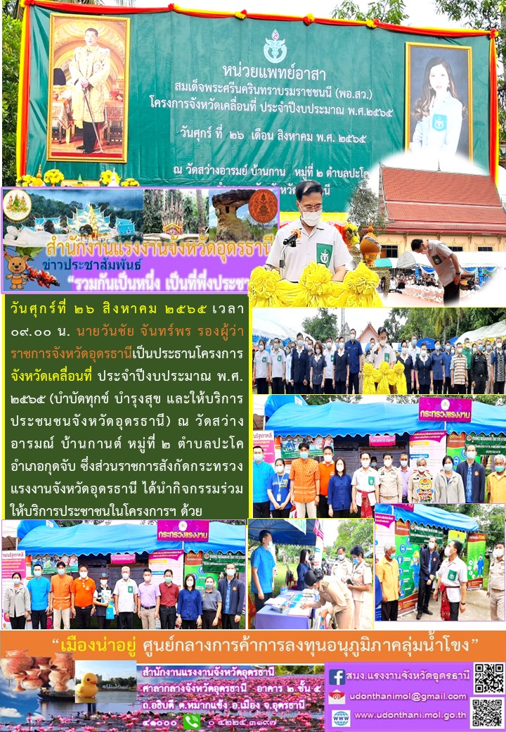 โครงการจังหวัดเคลื่อนที่ ประจำปีงบประมาณ พ.ศ. 2565 (บำบัดทุกข์ บำรุงสุข และให้บริการประชาชนจังหวัดอุดรธานี)