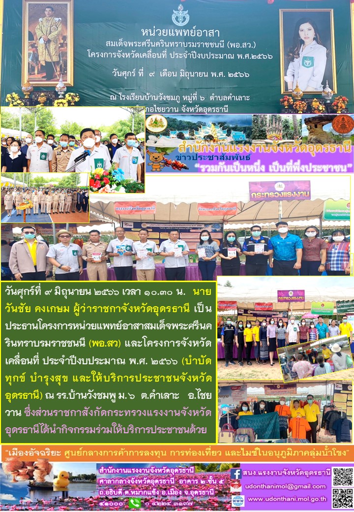 โครงการจังหวัดเคลื่อนที่ ประจำปีงบประมาณ พ.ศ. 2566 (บำบัดทุกข์ บำรุงสุข และให้บริการประชาชนจังหวัดอุดรธานี)