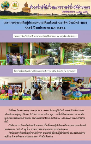 โครงการช่วยเหลือผู้ประสบความเดือดร้อนด้านอาชีพ จังหวัดอ่างทอง ประจำปีงบประมาณ พ.ศ. 2561