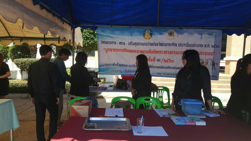 เมื่อวันที่ ๑๖ กุมภาพันธ์ 2560 นายสิริรัฐ ชุมอุปการ ผู้ว่าราชการจังหวัดอำนาจเจริญ เป็นประธานพิธีเปิดโครงการบำบัดทุกข์บำรุงสุขสร้างรอยยิ้มให้ประชาชน และหน่วยแพทย์เคลื่อนที่ พอ.สว. ณ บริเวณหน้าองค์การบริหารส่วนตำบลคำพระ ม. ๑ ต.คำพระ อ.หัวตะพาน จังหวัดอำนาจเจริญ หน่วยงานสังกัดกระทรวงแรงงานจังหวัดอำนาจเจริญได้ร่วมจักโครงการสาน – สร้าง – เสริมสุขแรงงานไทยจังหวัดอำนาจเจริญ ประจำปี 2560 ครั้งที่ ๓ เพื่อให้บริการแก่ประชาชนที่มาร่วมงาน โดยมีการสาธิตการทำบราวนี่ การนวด แผนไทย การทำน้ำสมุนไพรเพื่อสุขภาพน้ำกระเจี๊ยบ รวมทั้งให้คำแนะนำเผยแพร่ภารกิจของหน่วยงานสังกัดกระทรวงแรงงาน