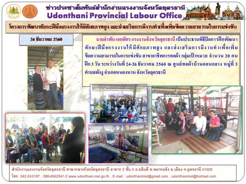 โครงการพัฒนาทักษะฝีมือแรงงานให้มีศักยภาพสูง และส่งเสริมการมีงานทำเพื่อเพิ่มขีดความสามารถในการแข่งขัน ต.พังงู อ.หนองหาน จ.อุดรธานี 24-26 ธันวาคม 2560