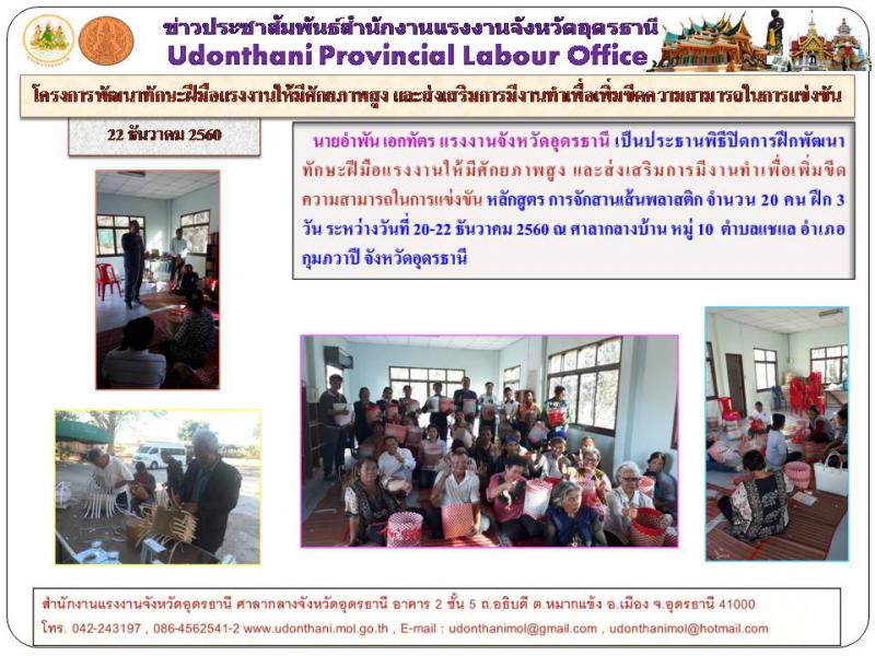 โครงการพัฒนาทักษะฝีมือแรงงานให้มีศักยภาพสูง และส่งเสริมการมีงานทำเพื่อเพิ่มขีดความสามารถในการแข่งขัน ต.แชแล อ.กุมภวาปี จ.อุดรธานี