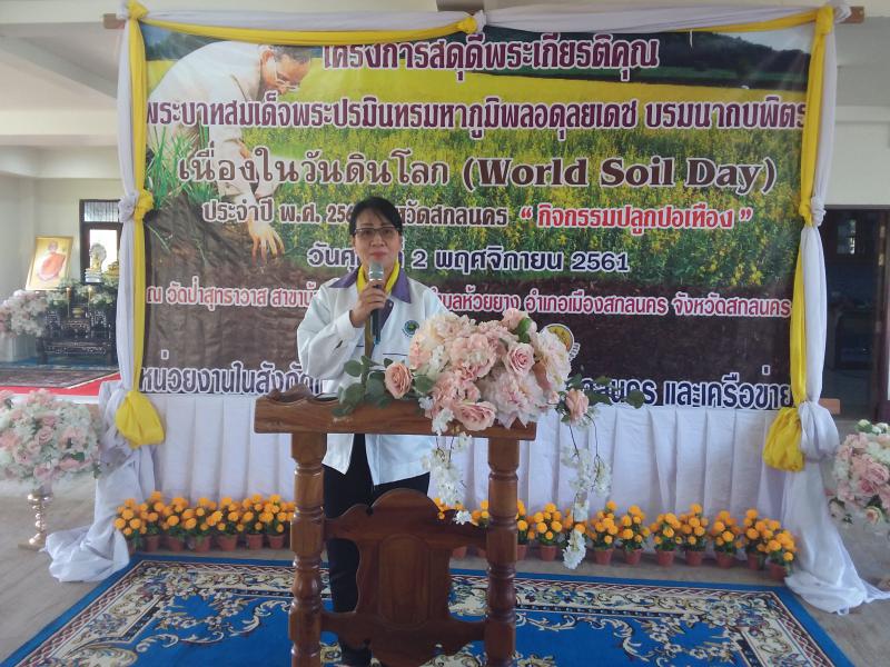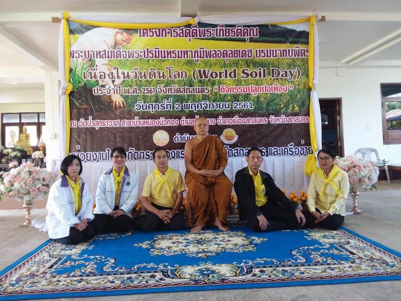วันศุกร์ที่ 2 พ.ย.61 ท่านเจ้าคุณพระราชวิสุทธินายก เจ้าอาวาสวัดป่าสุทธาวาสและเจ้าคณะจังหวัดสกลนคร(ธรรมยุต) ประธานฝ่ายสงฆ์ และแรงงานจังหวัดสกลนคร (นางสาววิไลวรรณ เทียงดาห์) ประธานฝ่ายฆราวาสจัดกิจกรรมปลูกปอเทือง ตามโครงการสดุดีพระเกียรติคุณของพระบาทสมเด็จพระปรมินทรมหาภูมิพลอดุลยเดช บรมนาถบพิตร เนื่องในวันดินโลก (World Soil Day) ประจำปี พ.ศ. 2561 จังหวัดสกลนคร โดยมีหัวหน้าส่วนราชการและบุคลากรในสังกัดกระทรวงแรงงานจังหวัดสกลนคร และเครือข่าย (อาสาสมัครแรงงานอำเภอเมืองและประชาชนในพื้นที่) ประมาณ 100 คน ร่วมกิจกรรมอย่างพร้อมเพรียง ณ วัดป่าสุทธาวาส สาขาบ้านหนองบัวทอง ตำบลห้วยยาง อำเภอเมือง จังหวัดสกลนคร