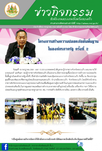 โครงการสร้างความปลอดภัยขั้นพื้นฐานในองค์กรภาครัฐ จังหวัดสระแก้ว ครั้งที่ 2
