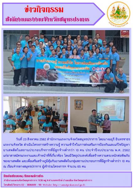 โครงการสร้างความรู้ ความเข้าใจในการส่งเสริมการป้องกันและแก้ไขปัญหา ยาเสพติดในสถานประกอบกิจการที่มีลูกจ้างต่ำกว่า 10 คน ประจำปีงบประมาณ พ.ศ. 2562
