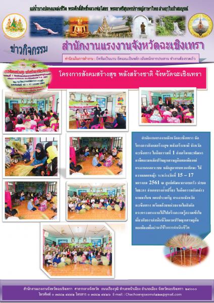 โครงการสังคมสร้างสุข พลังสร้างชาติจังหวัดฉะเชิงเทรา (ทักษะการทำไม้กวาดดอกหญ้า) ตำบลโยธะกา จังหวัดฉะเชิงเทรา