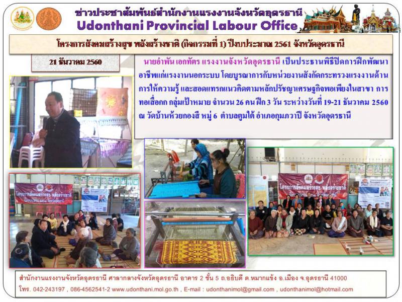 โครงการสังคมสร้างสุข พลังสร้างชาติ (กิจกรรมที่ 1) ปีงบประมาณ 2561 จังหวัดอุดรธานี ต.ตูมใต้ อ.กุมภวาปี จ.อุดรธานี 19-21 ธันวาคม 2560