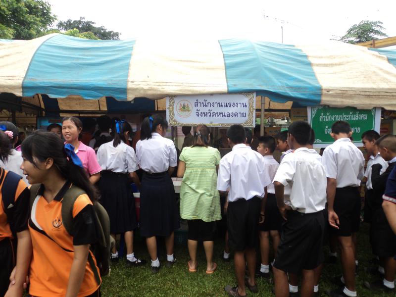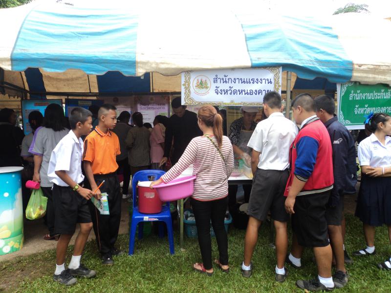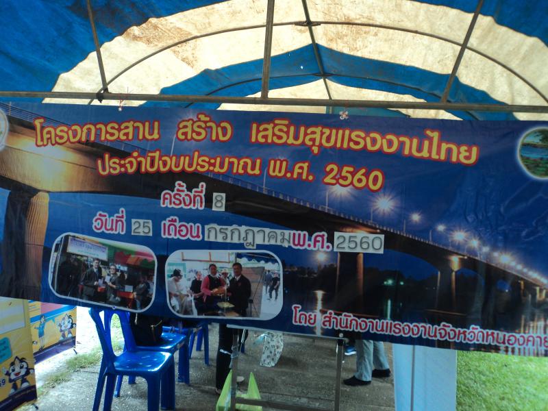 สำนักงานแรงงานจังหวัดหนองคาย ได้จัดโครงการสาน สร้าง เสริมสุขแรงงานไทย จังหวัดหนองคาย ประจำปีงบประมาณ พ.ศ. 2560 ครั้งที่ 8 บูรณาการร่วมกับการเข้าร่วมโครงการปกป้องและเชิดชูพระมหากษัตริย์ และหน่วยบำบัดทุกข์ บำรุงสุข จังหวัดหนองคาย ประจำปีงบประมาณ 2560 เมื่อวันอังคาร ที่ 25 กรกฎาคม 2560 ณ โรงเรียนประชาบดีพิทยาคม หมู่ที่13 บ้านโนนโพธิ์ทอง ตำบลโพนแพง อำเภอรัตนวาปี จังหวัดหนองคาย โดยมีวัตถุประสงค์ให้ประชาชนมีความปรองดองสมานฉันท์ เกิดความรักสามัคคีเป็นอันหนึ่่งอันเดียวกัน รวมถึงให้ประชาชนได้รับความสะดวกโดยการนำบริการภาครัฐไปให้บริการประชาชนในพื้นที่ เพื่อสร้างความสัมพันธ์อันดีระหว่างประชาชนกับส่วนราชการ