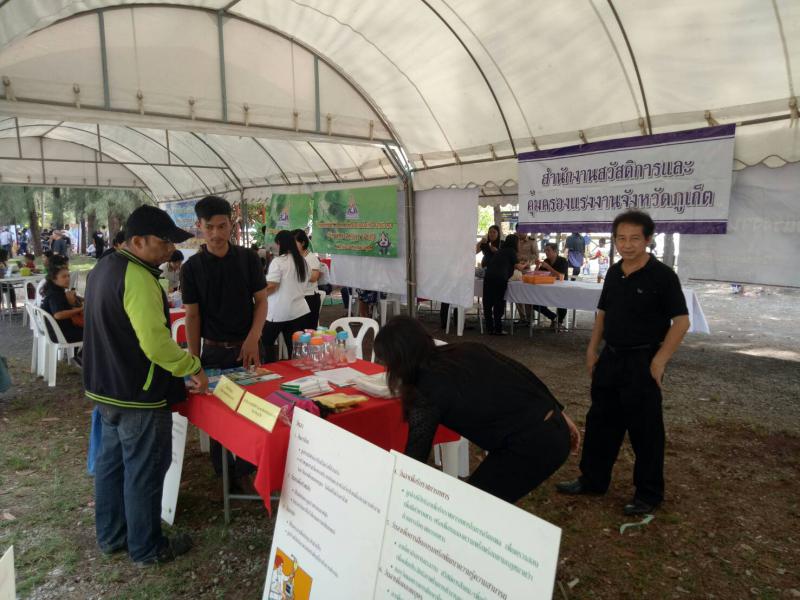 เมื่อพฤหัสบดี ที่ 27 เมษายน 2560 เวลา 08.30 น. นายสุทธิพงศ์ สายสาคเรศ ร่วมด้วยข้าราชการและเจ้าหน้าที่สังกัดกระทรวงแรงงาน ร่วมงานโครงการสานสร้างเสริมสุขแรงงานไทย เพื่อส่งเสริมและพัฒนาแรงงานนอกระบบให้แข้มแข็ง โดยบูรณาการร่วมกับ เทศบาลสัญจรพบประชาชนและจังหวัดภูเก็ตเคลื่อนที่ โดยสาธิตการประกอบอาชีพอิสระ "สาธิตการทำกิ๊ฟ กะดอกไม้ใยบัว’ ณ หาดท่าหลา หมู่2 ต.ป่าคลอก อ.ถลาง จ.ภูเก็ต