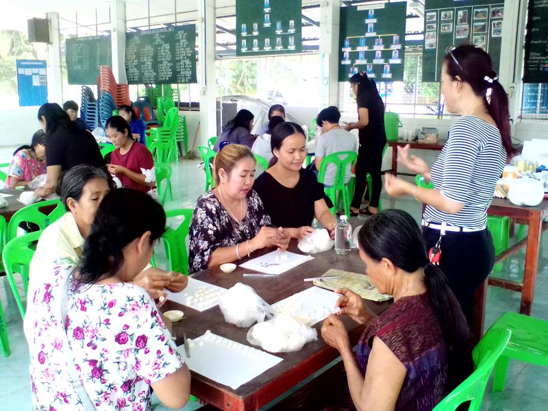 โครงการสาน-สร้าง-เสริมสุขแรงงานไทย ประจำปีงบประมาณ พ.ศ. 2560 กิจกรรมที่ 3 ส่งเสริมเพื่อพัฒนาแรงงานนอกระบบ ให้เข้มแข็ง การฝึกอาชีพการทำสบู่ หมู่บ้านอพป.คลองน้ำใส ม.6 ต.คลองน้ำใส อ.อรัญประเทศ จ.สระแก้ว วันที่ 21-22 กรกฎาคม 2560 จำนวน 20 คน