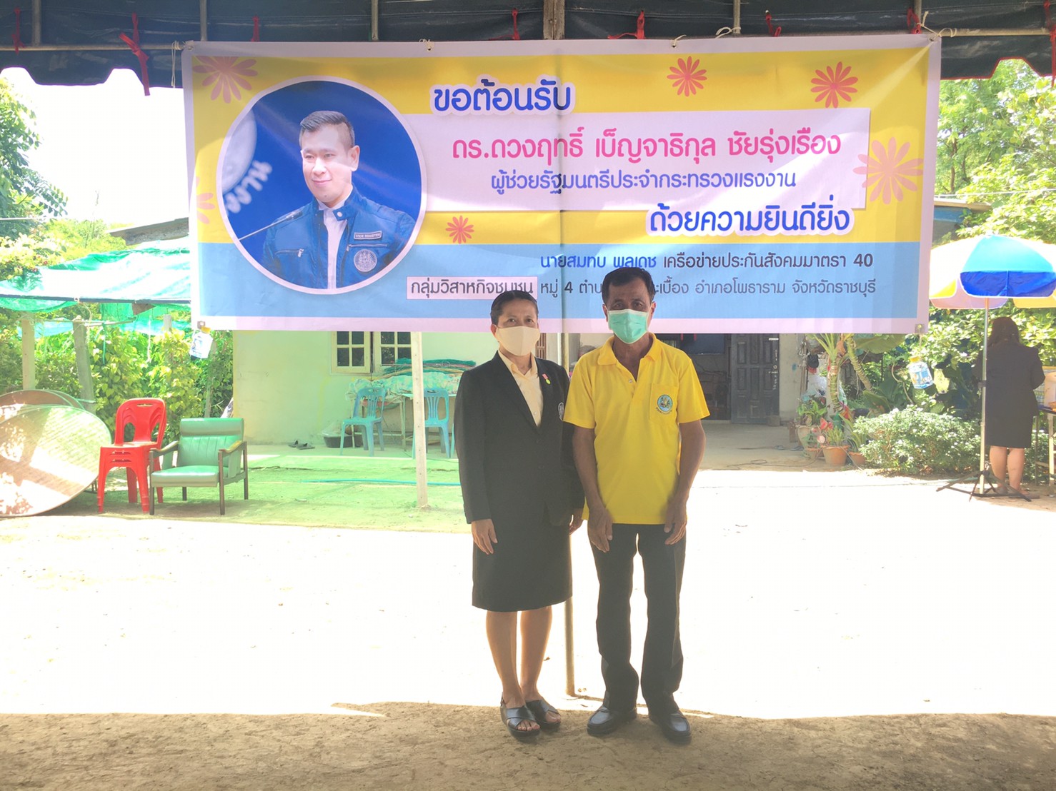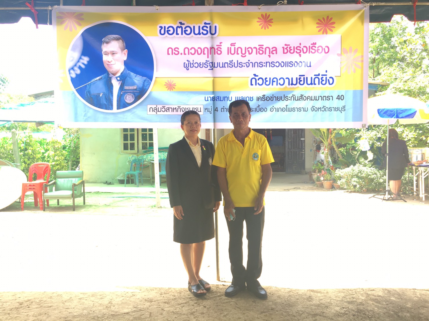 – เวลา๑๐.๓๐ น. นางสุธีรา ทรงความดี นักวิชาการแรงงานชำนาญการ เข้าร่วมตรวจเยี่ยมกลุ่มผู้ประกันตนมาตรา ๔๐ และเยี่ยมชมสินค้าและผลิตภัณฑ์จากโครงการแก้ไขปัญหาความเดือดร้อนด้านอาชีพ