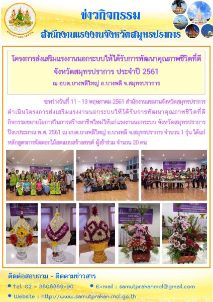 โครงการส่งเสริมแรงงานนอกระบบให้ได้รับการพัฒนาคุณภาพชีวิตที่ดีจังหวัดสมุทรปราการ ประจำปี 2561 ณ อบต.บางพลีใหญ่ อ.บางพลี จ.สมุทรปราการ
