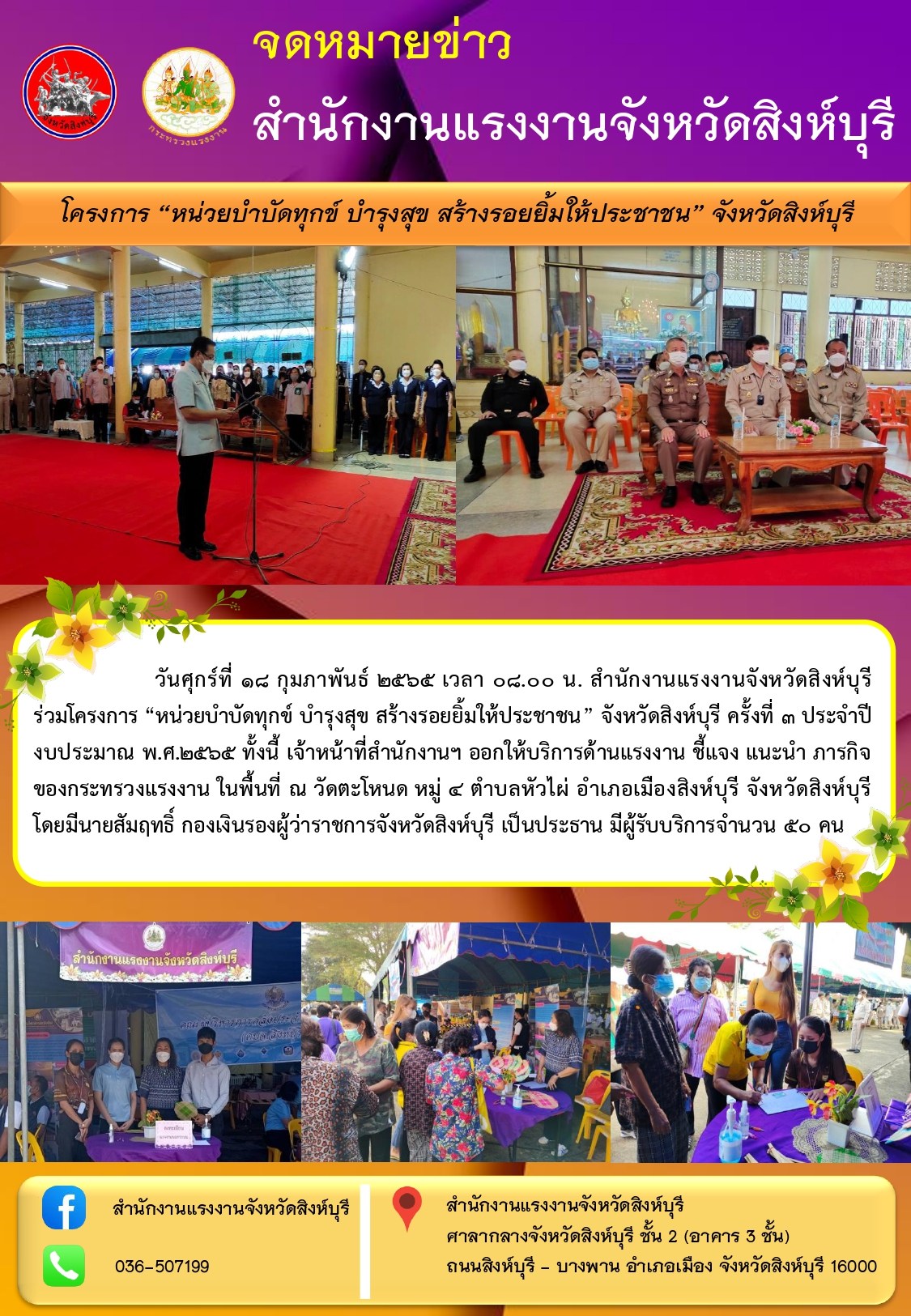 โครงการ”หน่วยบำบัดทุกข์ บำรุงสุข สร้างรอยยิ้มให้ประชาชน” จังหวัดสิงห์บุรี