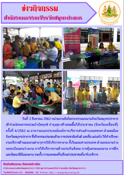 โครงการหน่วยบำบัดทุกข์ บำรุงสุข สร้างรอยยิ้มให้ประชาชน (จังหวัดเคลื่อนที่) ครั้งที่ 4-2562 ณ อาคารอเนกประสงค์องค์การบริหารส่วนตำบลแพรกษา