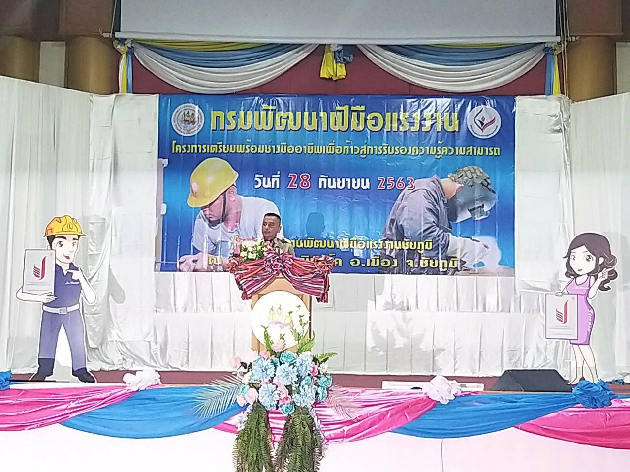 วานนี้วันจันทร์ที่ 28 กันยายน 2563 เวลา 09.30 น.นายอำนาจ  เชิงไว แรงงานจังหวัดชัยภูมิ ร่วมพิธีเปิดโครงการเตรียมความพร้อมอย่างมืออาชีพ เพื่อก้าวสู่การรับรองความรู้ความสามารถ ณ โรงแรมชัยภูมิปาร์ค อำเภอเมือง จังหวัดชัยภูมิ โดย นายราชันย์ ซุ่นหั้ว รองผู้ว่าราชการจังหวัดชัยภูมิ เป็นประธานเปิดโครงการ