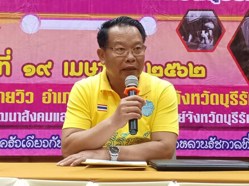 เมื่อวันที่ 19 เมษายน 2562 เวลา 09.00 น. นางมาลัยอร หิรัณยรัชต์ แรงงานจังหวัดบุรีรัมย์ มอบหมายให้ นายทวีศักดิ์ สวัสดิ์สิงห์ นักวิชาการแรงงานชำนาญการ ร่วมเปิดและฟังบรรยายพิเศษโครงการเผยแพร่ความรู้เกี่ยวกับการค้ามนุษย์ให้แก่กลุ่มเป้าหมายในพื้นที่จังหวัดบุรีรัมย์ ณ ห้องประชุมโรงแรมสกายวิว อำเภอเมืองบุรีรัมย์ จังหวัดบุรีรัมย์ โดยมีนายพิจิตร บุญทัน รองผู้ว่าราชการจังหวัดบุรีรัมย์ เป็นประธาน