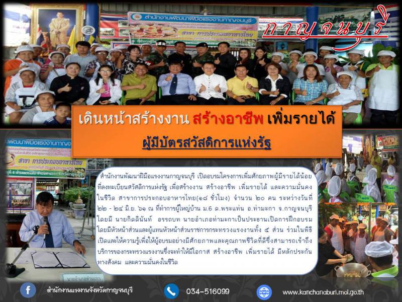 โครงการเพิ่มศักยภาพผู้มีรายได้น้อยที่ลงทะเบียนสวัสดิการแห่งรัฐ ในส่วนที่กระทรวงแรงงาน ได้รับผิดชอบ เพื่อสร้างงานสร้างอาชีพเพิ่มรายได้และความมั่นคงในชีวิตสำหรับพี่น้องชาวกาญจนบุรี สำนักงานพัฒนาฝีมือแรงงานกาญจนบุรีเปิดอบรมโครงการเพิ่มศักยภาพผู้มีรายได้น้อยที่ลงทะเบียนสวัสดิการแห่งรัฐ เพื่อสร้างงาน สร้างอาชีพ เพิ่มรายได้ และความมั่นคงในชีวิต