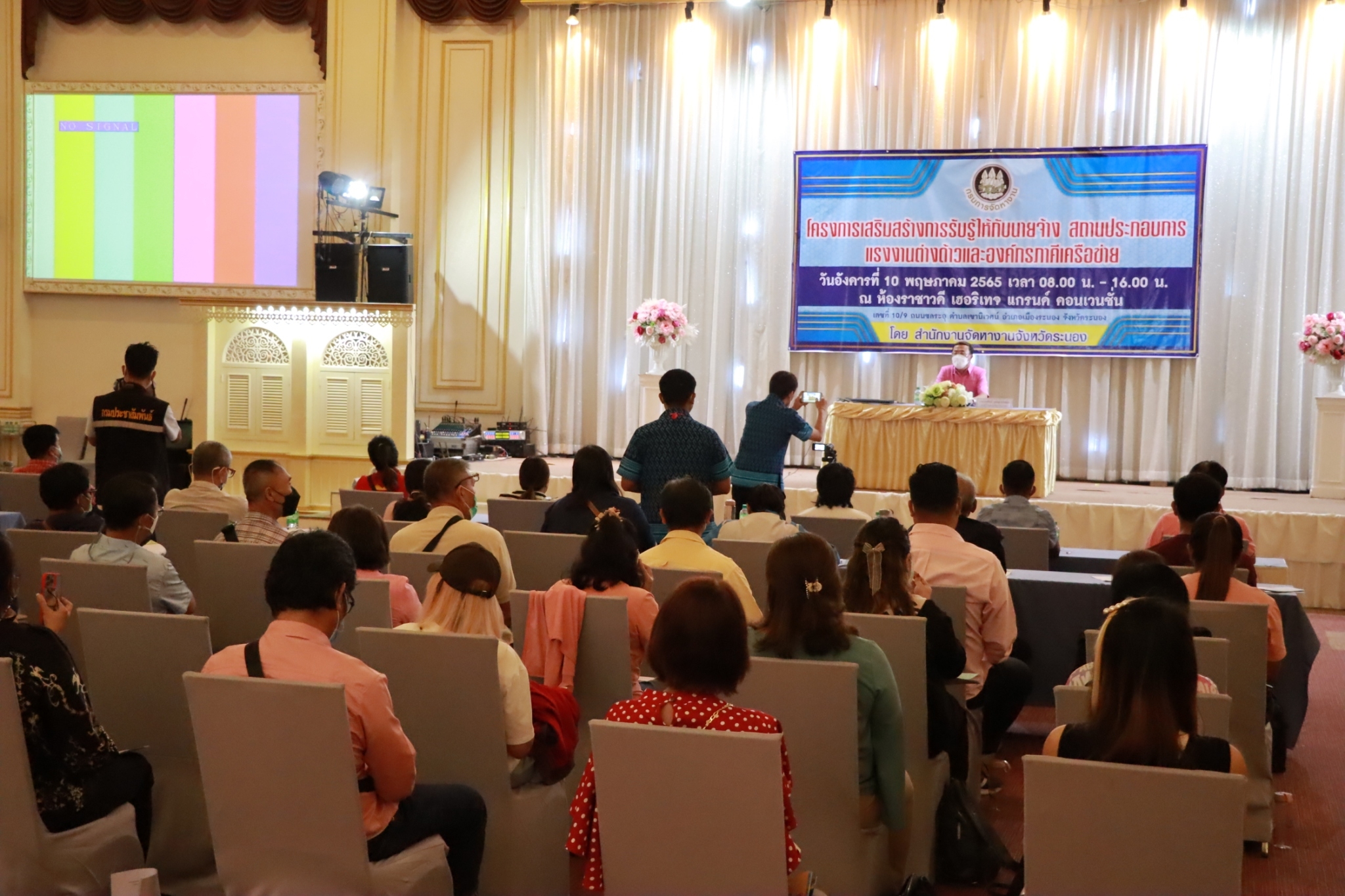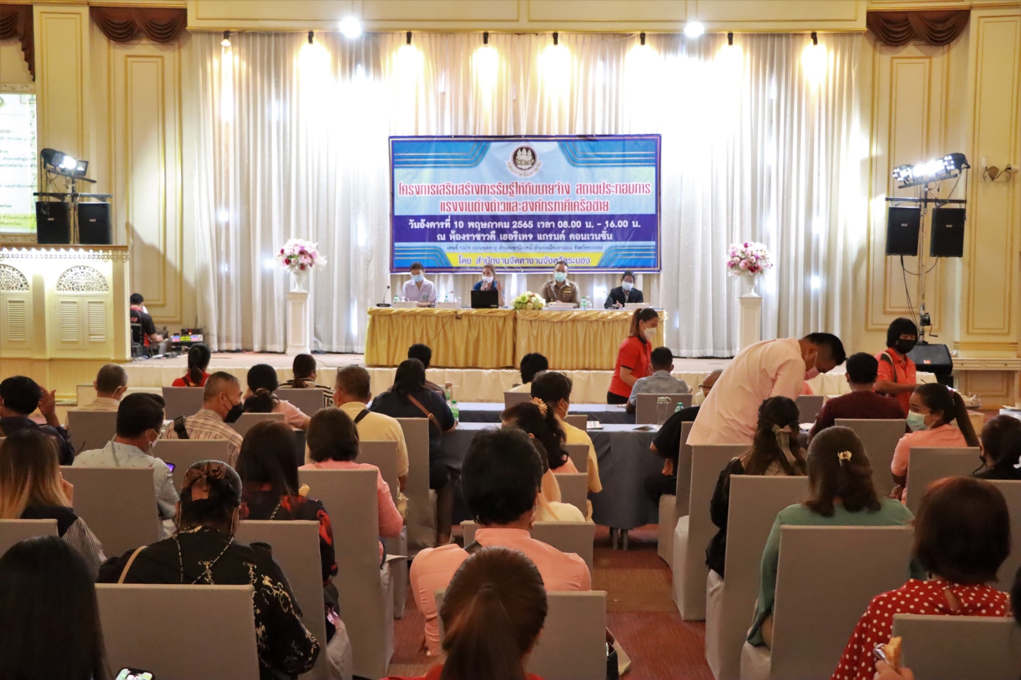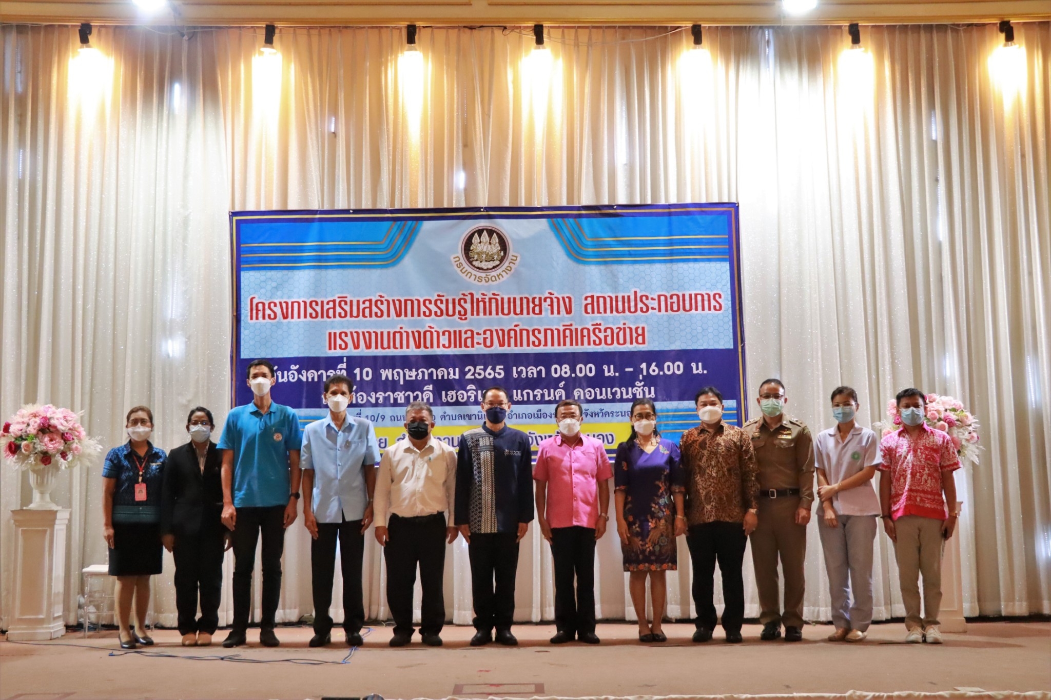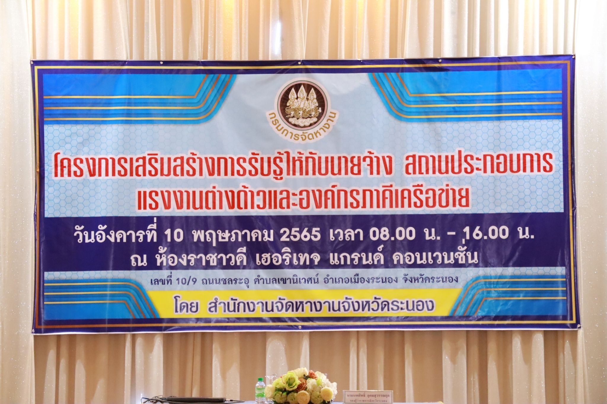 โครงการเสริมสร้างการรับรู้ให้กับนายจ้าง สถานประกอบการ แรงงานต่างด้าวและองค์กรภาคีเครือข่าย ประจำปีงบประมาณ พ.ศ. 2565 จัดโดย สำนักงานจัดหางานจังหวัดระนอง