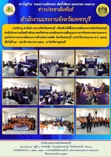 โครงการเสริมสร้างศักยภาพเครือข่ายอาสาสมัครแรงงานเพื่อบูรณาการภารกิจของกระทรวงแรงงาน และโครงการอาสาสมัครแรงงานต้านภัยยาเสพติด จังหวัดเพชรบุรี ประจำปีงบประมาณ พ.ศ. 2562