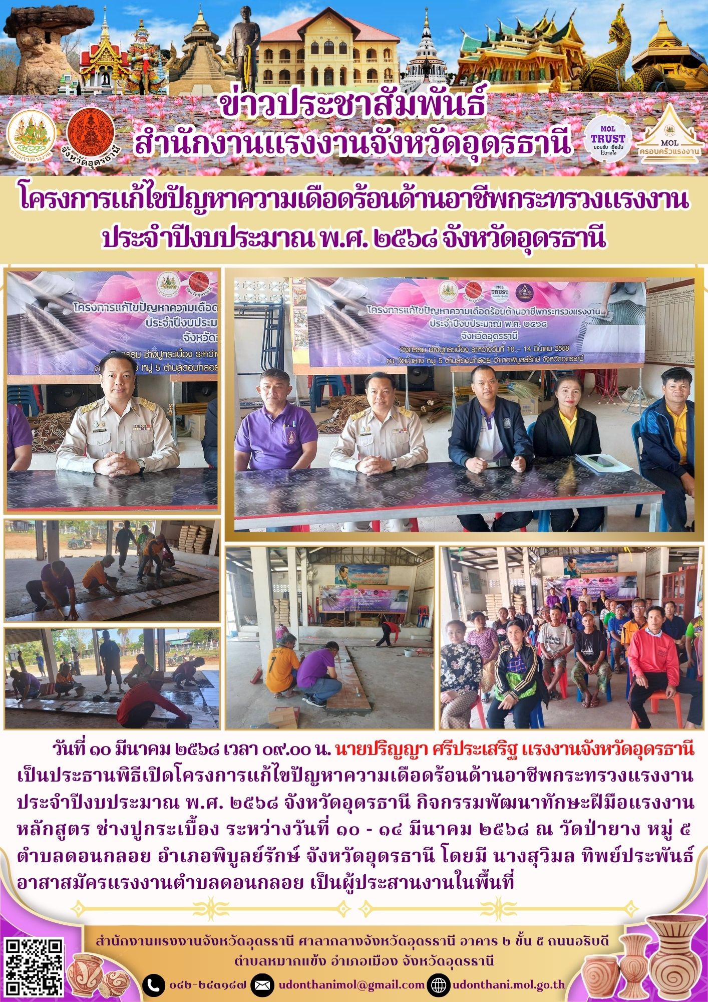 โครงการแก้ไขปัญหาความเดือดร้อนด้านอาชีพกระทรวงแรงงาน ประจำปีงบประมาณ พ.ศ. ๒๕๖๘ จังหวัดอุดรธานี