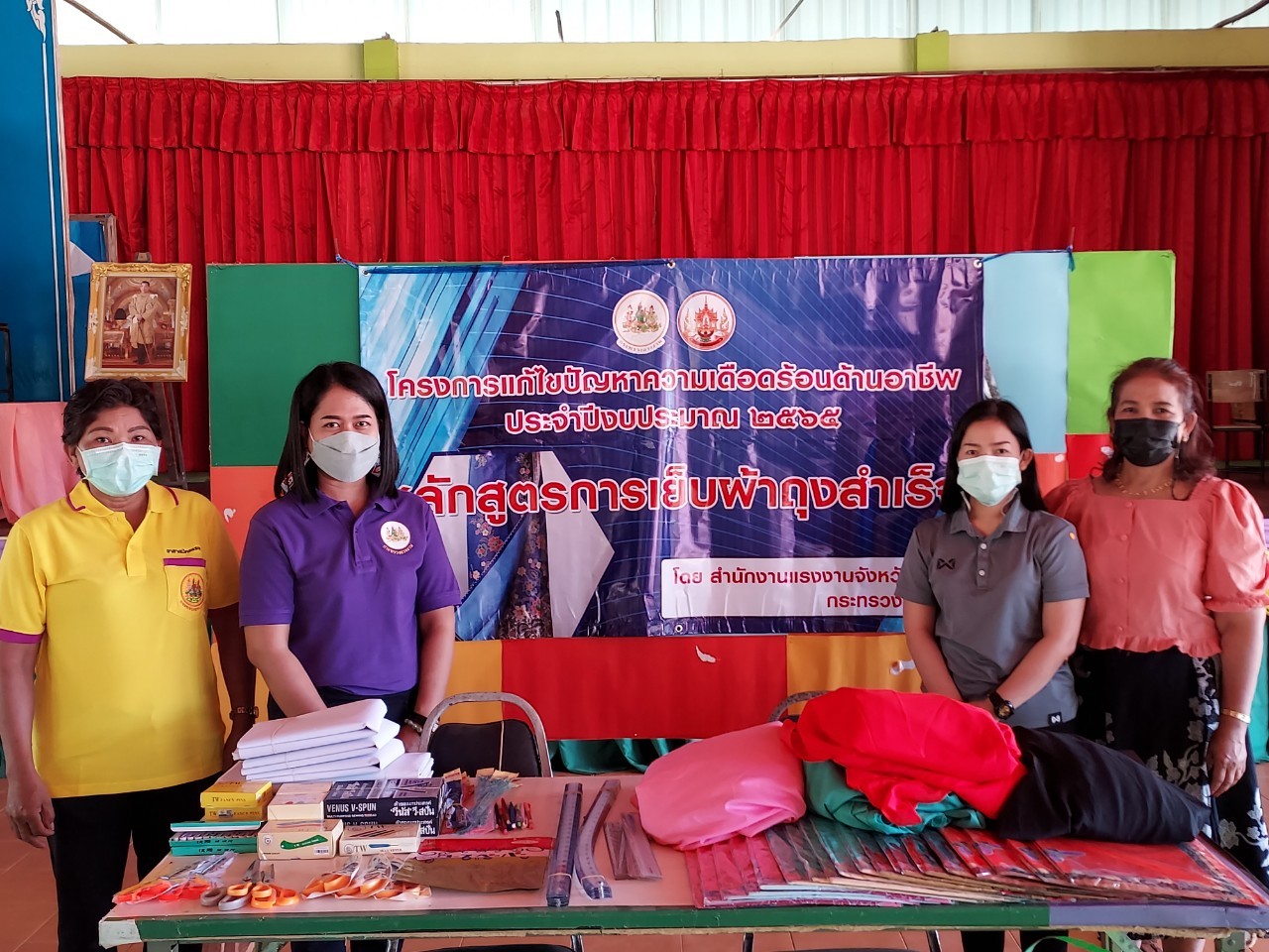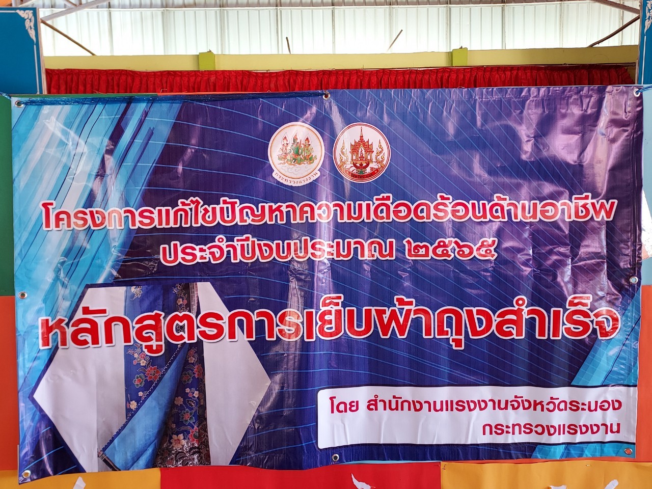 สรจ.ระนอง เปิดโครงการแก้ไขปัญหาความเดือดร้อนด้านอาชีพกระทรวงแรงงานฯ (การตัดเย็บผ้าถุงสำเร็จ)