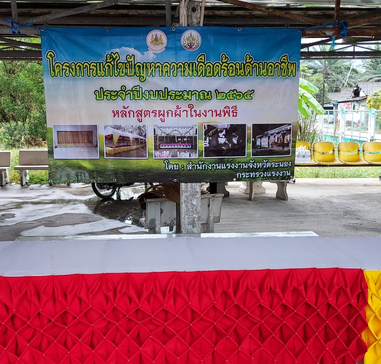 สรจ.ระนอง ปิดโครงการแก้ไขปัญหาความเดือดร้อนด้านอาชีพกระทรวงแรงงาน (ฝึกอาชีพ) หลักสูตร ผูกผ้าในงานพิธี
