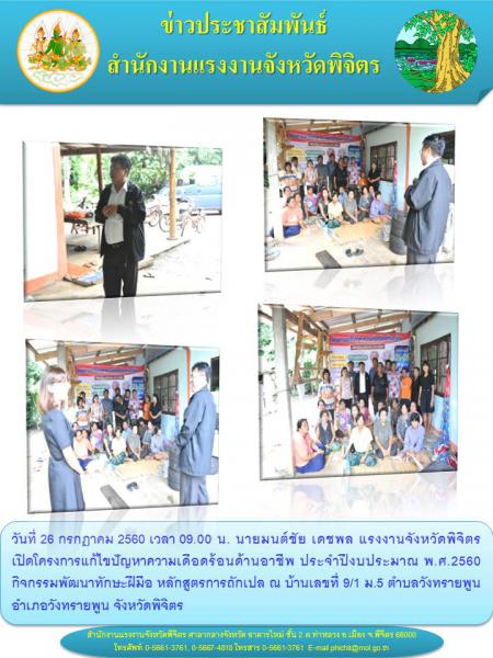 โครงการแก้ไขปัญหาความเดือดร้อนด้านอาชีพ จังหวัดพิจิตร ประจำปีงบประมาณ พ.ศ.2560