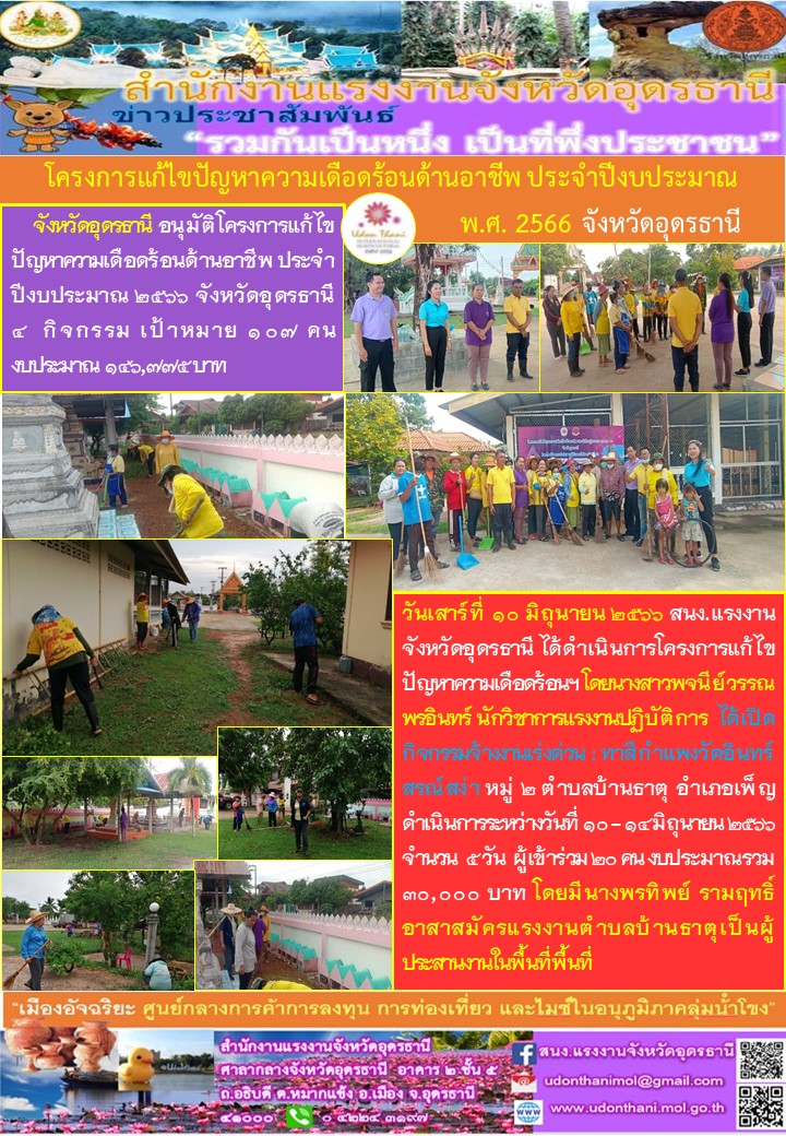 โครงการแก้ไขปัญหาความเดือดร้อนด้านอาชีพ ประจำปีงบประมาณพ.ศ. 2566 จังหวัดอุดรธานี