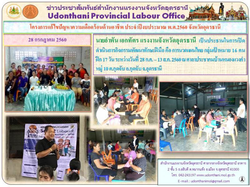 โครงการแก้ไขปัญหาความเดือดร้อนด้านอาชีพ ประจำปีงบประมาณ พ.ศ.2560 จังหวัดอุดรธานี (กิจกรรมพัฒนาทักษะฝีมือ คือ การนวดแผนไทย ต.กุดจับ อ.กุดจับ จ.อุดรธานี)