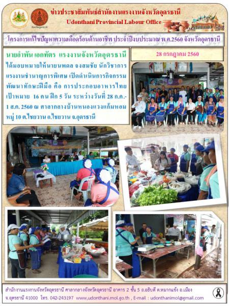โครงการแก้ไขปัญหาความเดือดร้อนด้านอาชีพ ประจำปีงบประมาณ พ.ศ.2560 จังหวัดอุดรธานี (กิจกรรมพัฒนาทักษะฝีมือ คือ การประกอบอาหารไทย ต.ไชยวาน อ.ไชยวาน จ.อุดรธานี)