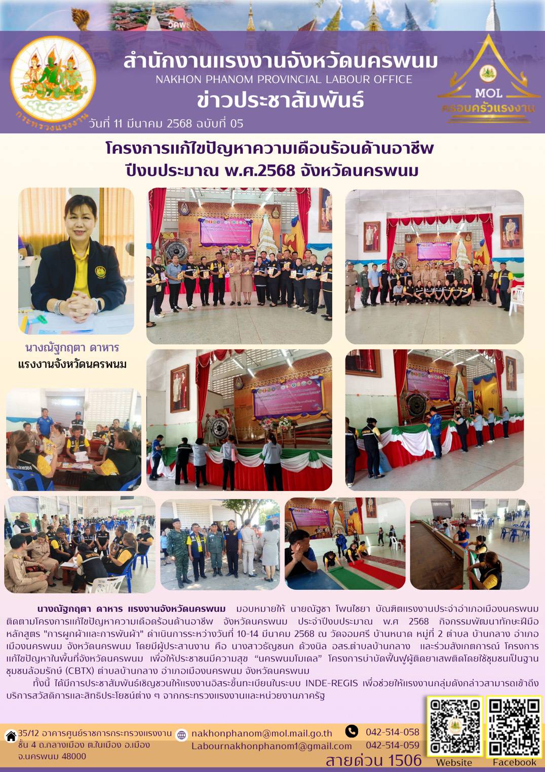 โครงการแก้ไขปัญหาความเดือดร้อนด้านอาชีพ ปีงบประมาณ พ.ศ. 2568 แรงงานจังหวัดนครพนม