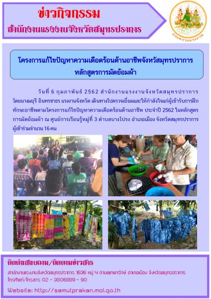 โครงการแก้ไขปัญหาความเดือดร้อนด้านอาชีพ หลักสูตรการมัดย้อมผ้า