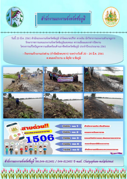 โครงการแก้ไขปัญหาความเดือนร้อนด้านอาชีพ ต.หนองบัวบาน อ.จัตุรัส จ.ชัยภูมิ (ปิดโครงการจ้างงานเร่งด่วน กำจัดผักตบชวา)