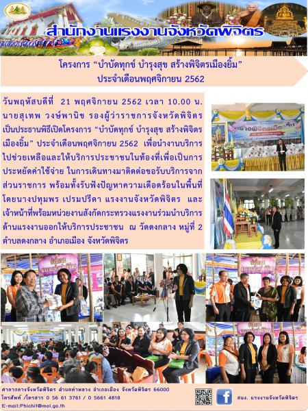 โครงการ “บำบัดทุกข์ บำรุงสุข สร้างพิจิตรเมืองยิ้ม” ประจำเดือนพฤศจิกายน 2562