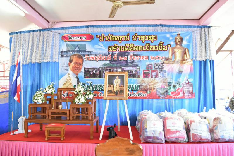 วันที่ 21 ธันวาคม 2560 นายวีระศักดิ์ วิจิตร์แสงศรี ผู้ว่าราชการจังหวัดพิจิตร รองผู้ว่าราชการจังหวัด เหล่ากาชาด หัวหน้าส่วนราชการในจังหวัด พร้อมด้วยข้าราชการ พนักงาน เจ้าหน้าที่ ออกให้บริการประชาชนตามโครงการ “บำบัดทุกข์ บำรุงสุข สร้างพิจิตรเมืองยิ้ม” ณ วัดไตรยางวนาราม ตำบลหนองพระ อำเภอวังทรายพูน ซึ่งเจ้าหน้าที่สำนักงานแรงงานจังหวัดพิจิตร ร่วมกิจกรรมโดยนำบริการด้านแรงงาน มาให้บริการในครั้งนี้